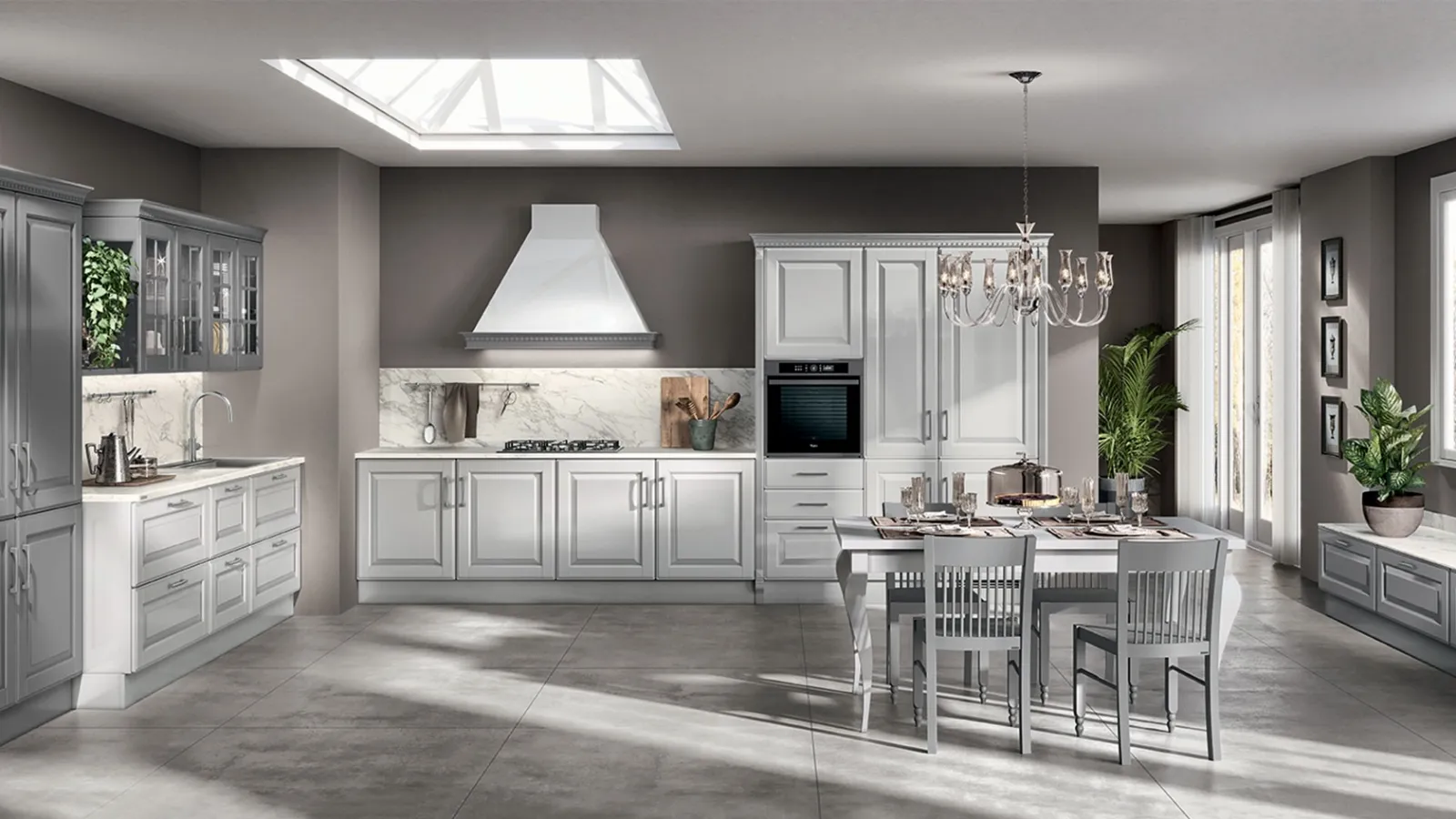 Tempo di attualizzare la zona cucina? Prediligi il modello Baltimora Grigio Airone Scavolini tra le nostre Cucine Classiche ad angolo.