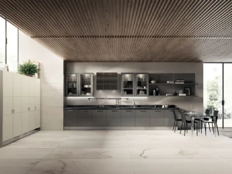 Cucine con isola Scavolini: entra e scopri un mondo di stile e design! La cucina classica Exclusiva in laccato lucido Grigio Tundra ti aspetta.