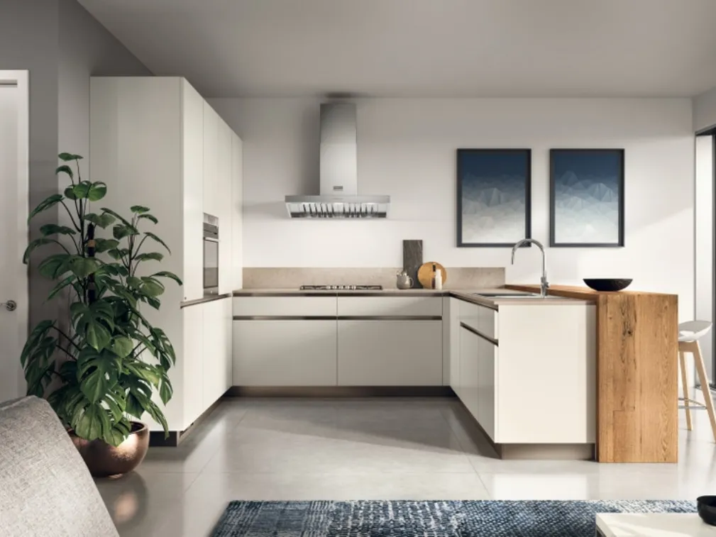 Se vuoi una cucina moderna Scavolini, Boxi in laccato Bianco in laccato opaco ti attende nel nostro negozio di Cucine Moderne con penisola.
