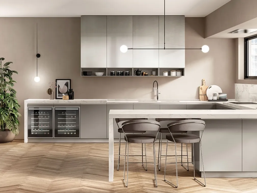 Se desideri una cucina moderna Scavolini, Boxi in laccato Grigio Titanio in laccato opaco ti sta aspettando nel nostro negozio di Cucine Moderne con penisola.