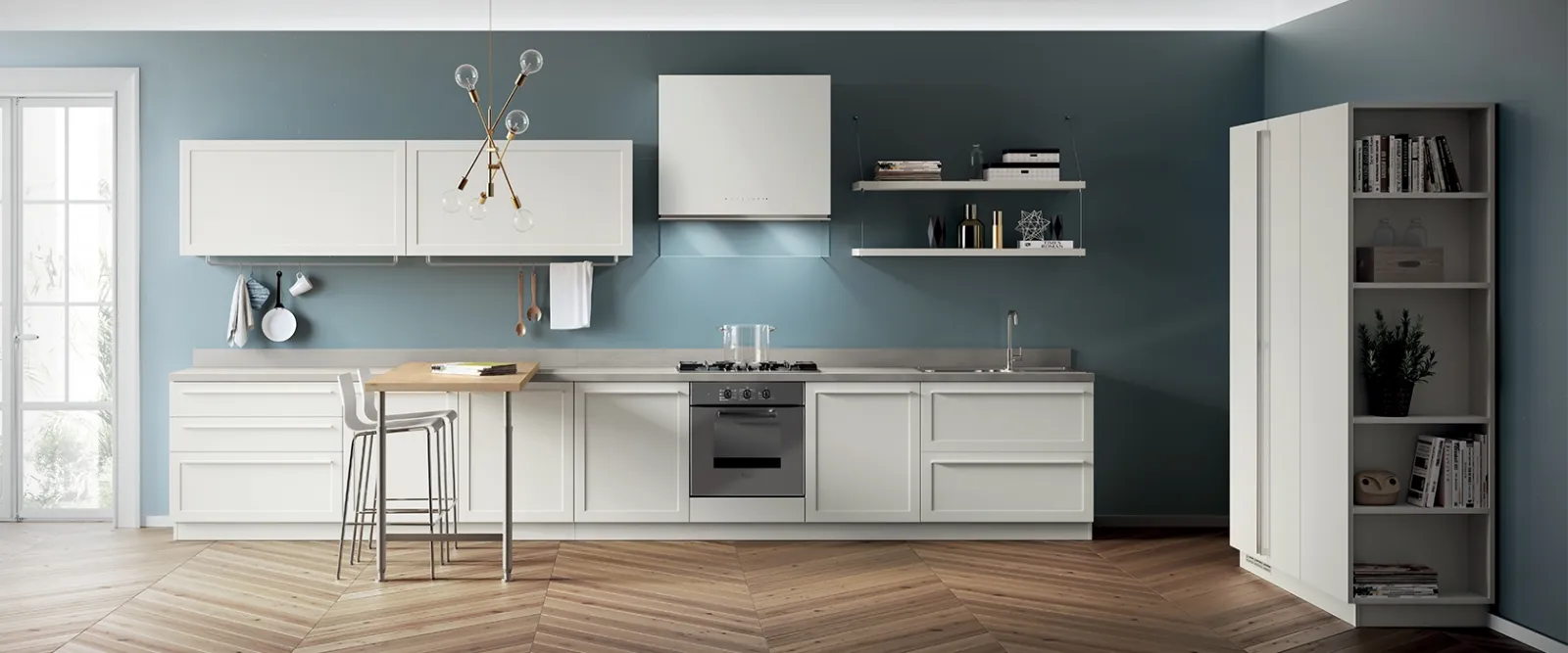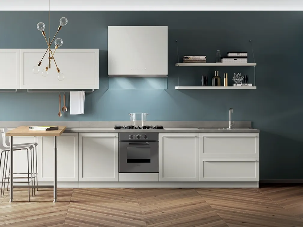Scopri di più sulla cucina Carattere Bianco Prestige con penisola di Scavolini: questa soluzione in laccato opaco sarà l'acquisto ideale per te!