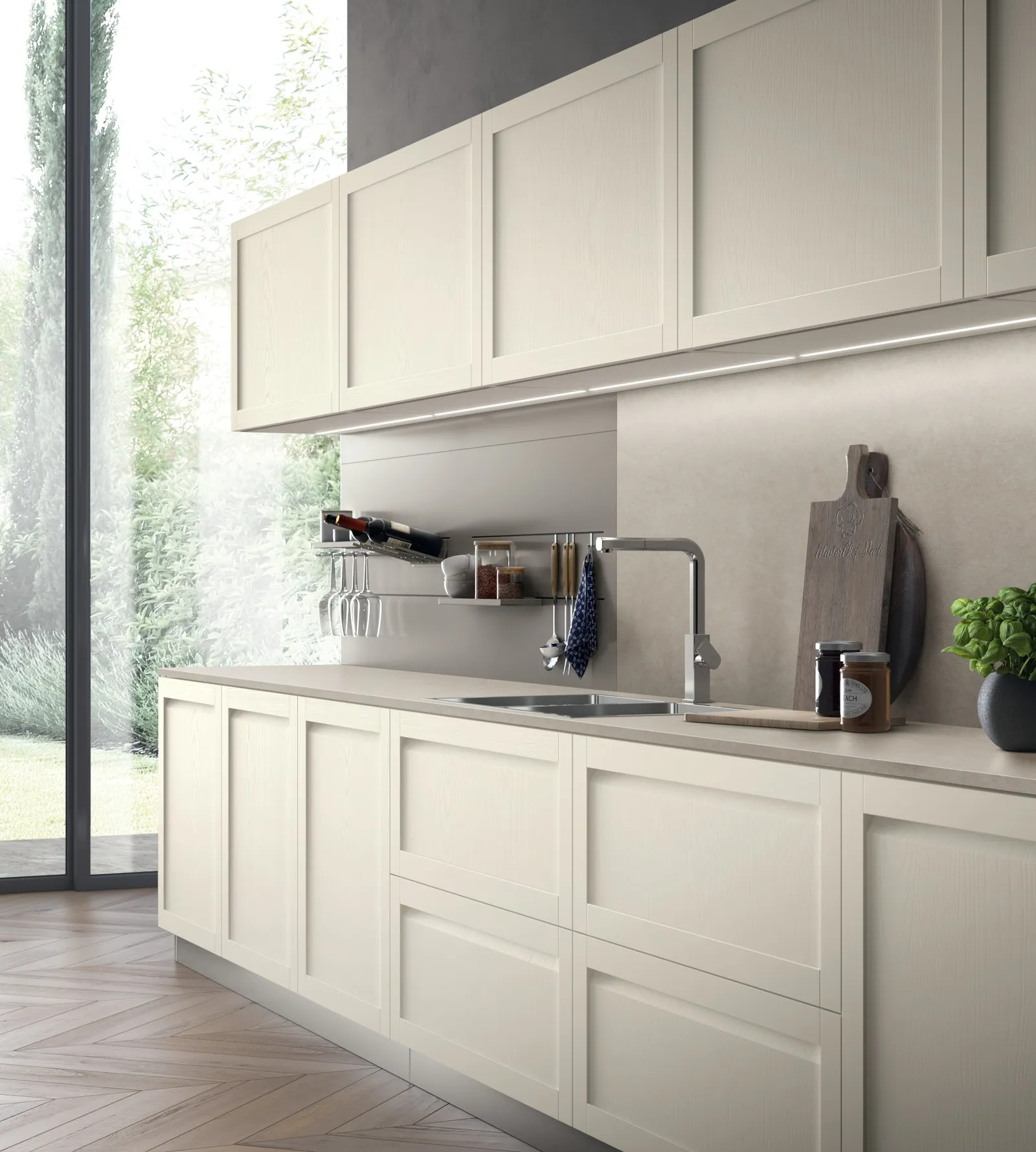 Se sei alla ricerca di una cucina moderna, ottieni informazioni sul modello Carattere Frassino Cotone Scavolini.