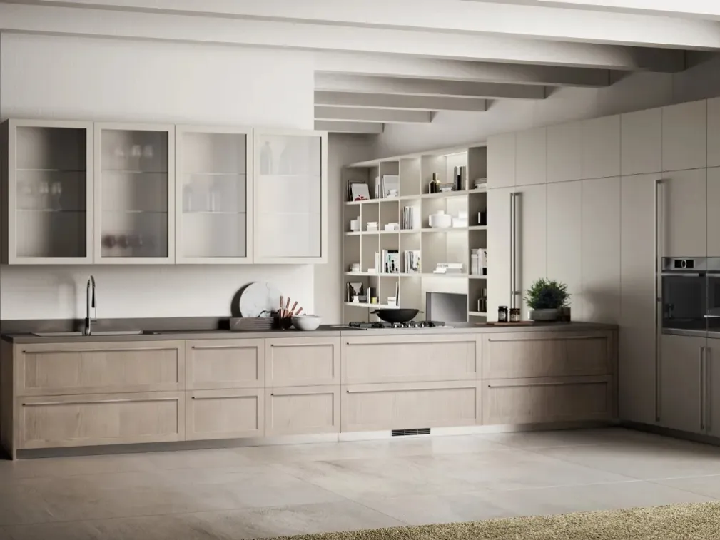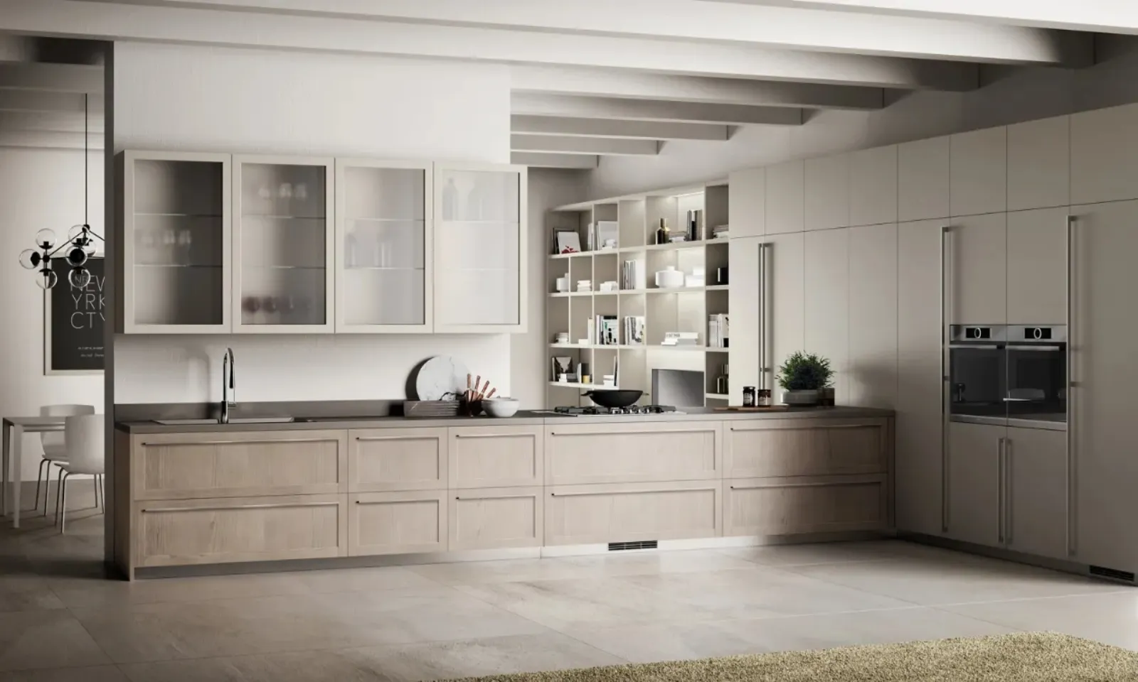 Cucine Moderne ad angolo: clicca e scopri una ricca gamma di soluzioni della firma Scavolini, tra cui il modello Carattere in Frassino Arena e laccato Tortora.