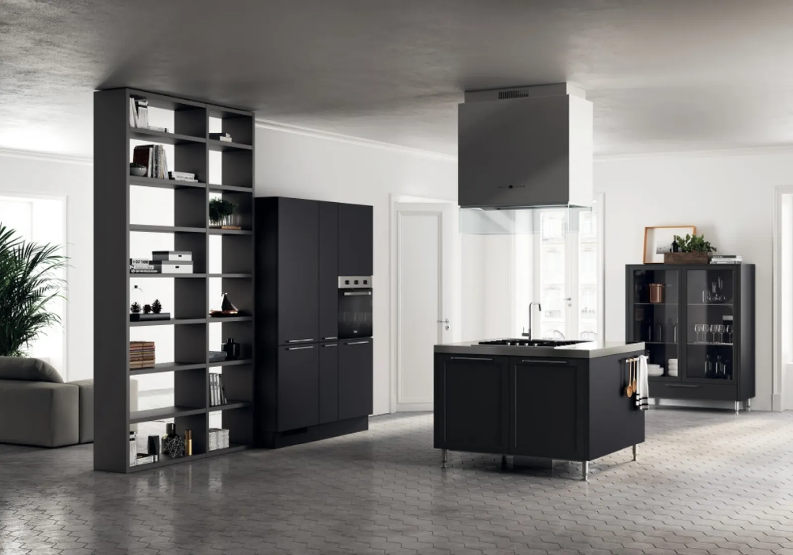 Clicca e scopri un mondo di Cucine Moderne con isola: la cucina Carattere in Nero Ardesia Scavolini in laccato opaco ti sta aspettando!