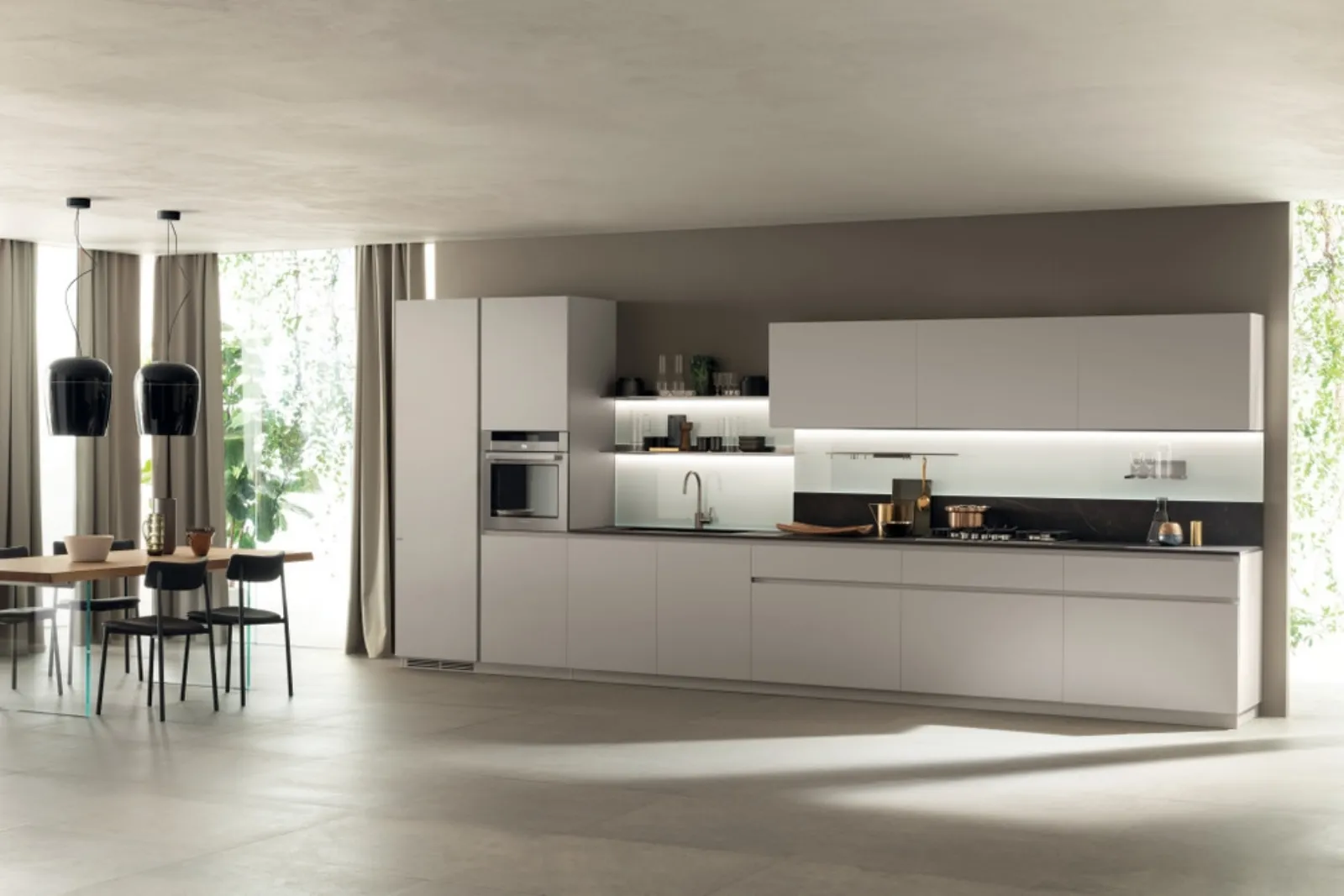 Clicca e scopri un mondo di Cucine Moderne in linea: la cucina DeLinea in laccato Grigio Chiaro Scavolini in laccato opaco ti aspetta!