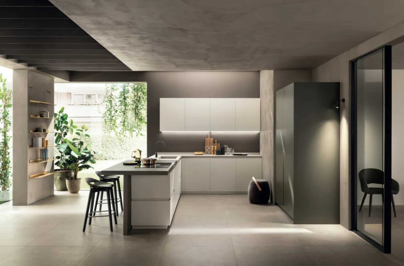 Scopri di più sulla cucina DeLinea in laccato opaco Tortora e Verde Minerale di Scavolini: questa soluzione in laccato opaco sarà la scelta ideale per te!