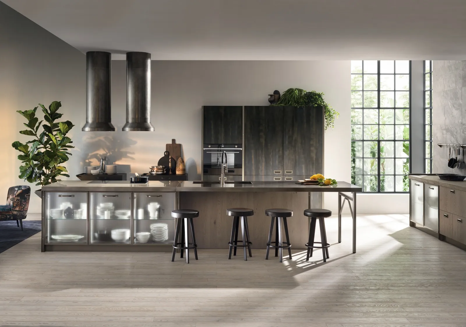 Clicca e scopri un universo di Cucine Moderne con isola: la cucina Diesel get Together Soft Industrial Style Scavolini in legno ti sta aspettando!