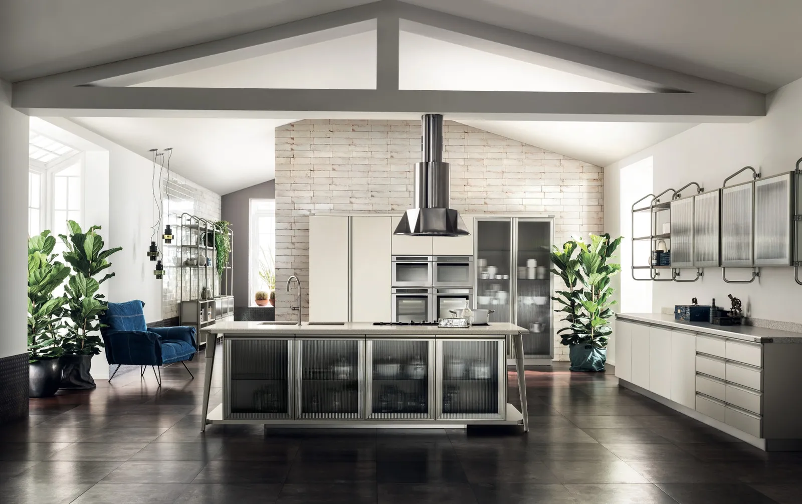 Clicca e scopri un mondo di Cucine Moderne con isola: la cucina Diesel Open Workshop con Top in Quarz Motley opaco Scavolini in laccato opaco ti sta aspettando!
