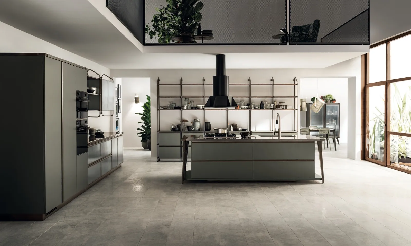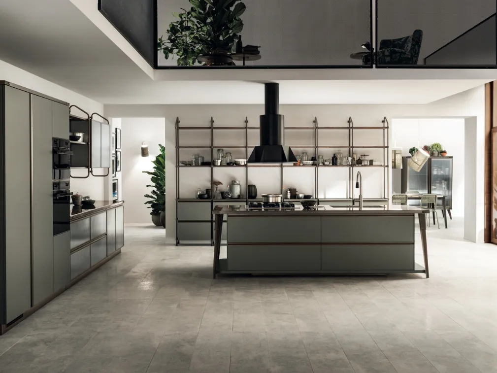 Cucine Moderne con isola: clicca e scopri una ricca gamma di soluzioni della marca Scavolini, tra cui il modello Diesel Open Workshop laccato Verde Minerale.