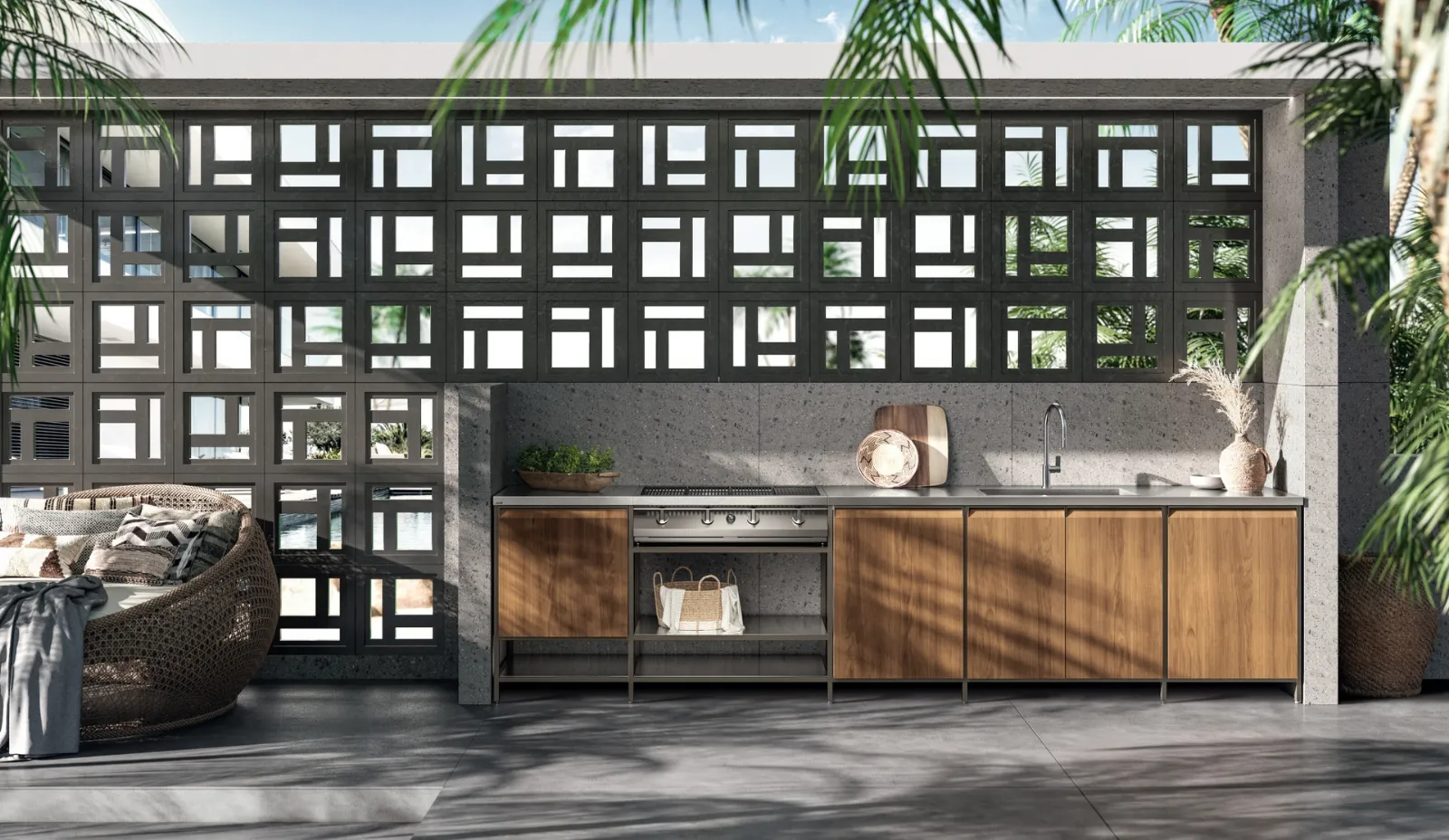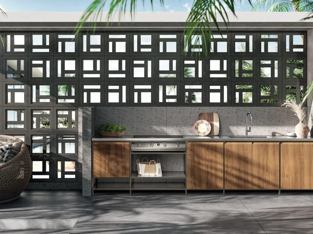 Ottieni informazioni sulla cucina Formalia Outdoor 05 di Scavolini: questa soluzione in legno sarà la scelta ideale per te!