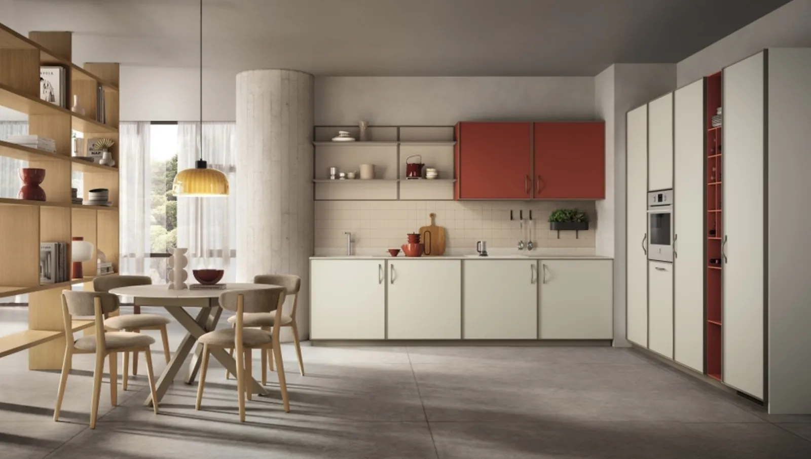 Ottieni informazioni sulla cucina Jeometrica 03 Bianco Puro e Paprika di Scavolini: questa soluzione in melaminico sarà l'acquisto ideale per te!