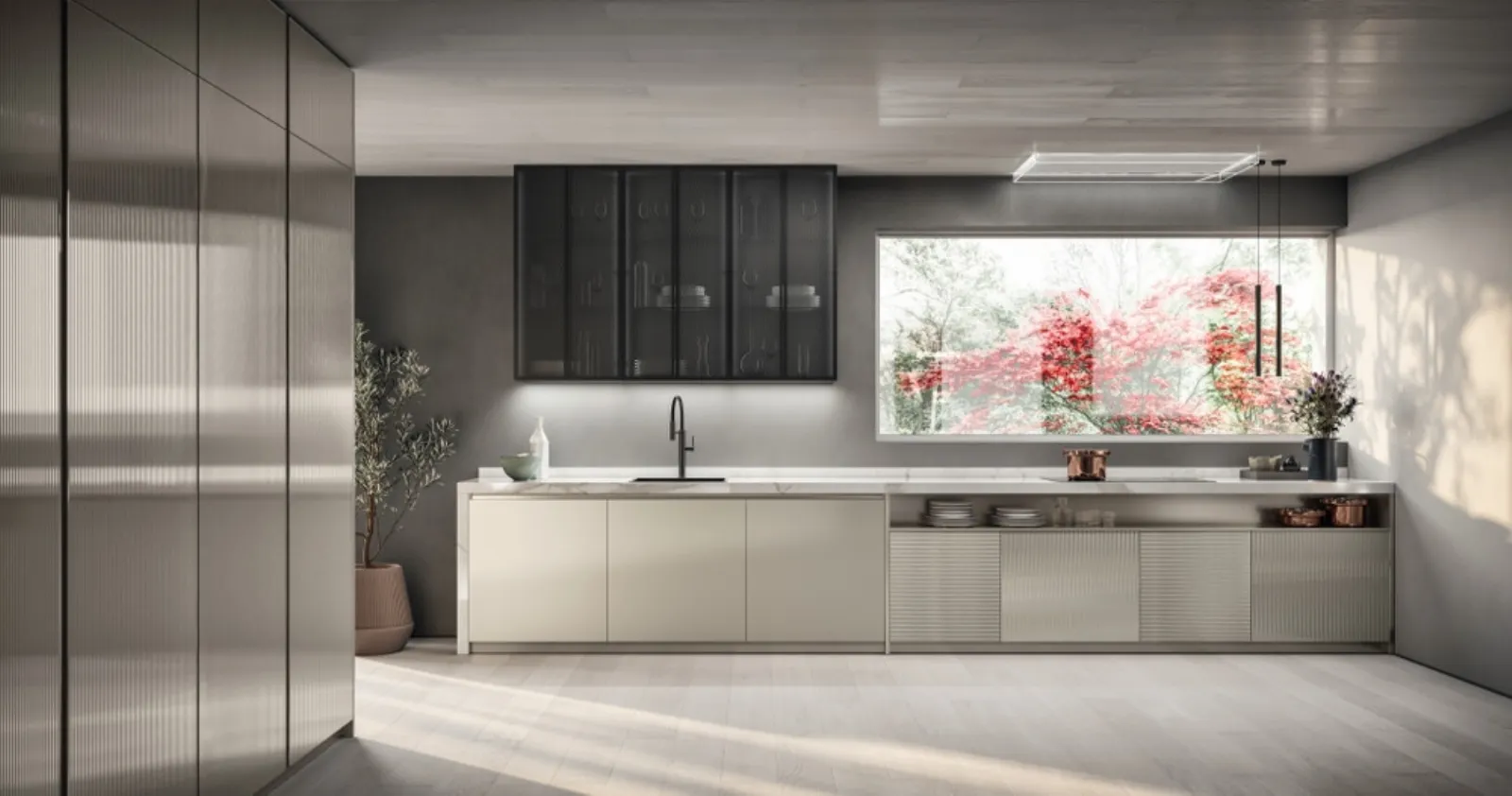 Se vuoi una cucina moderna, scopri di più sul modello Libra in vetro opaco Perlage Scavolini.
