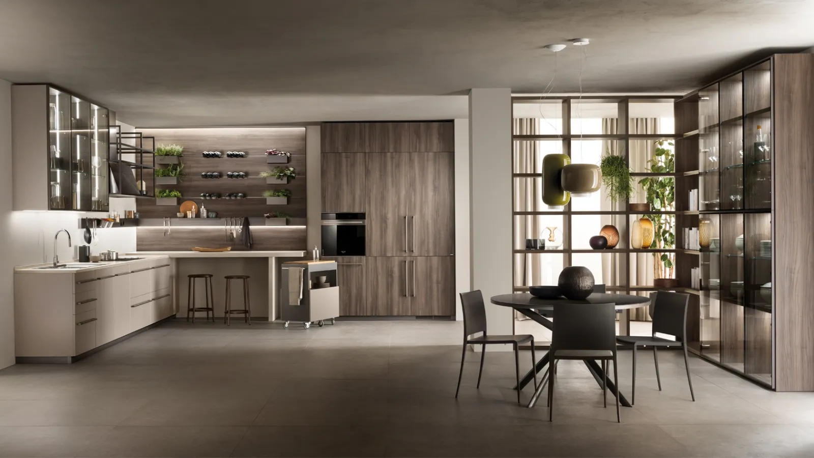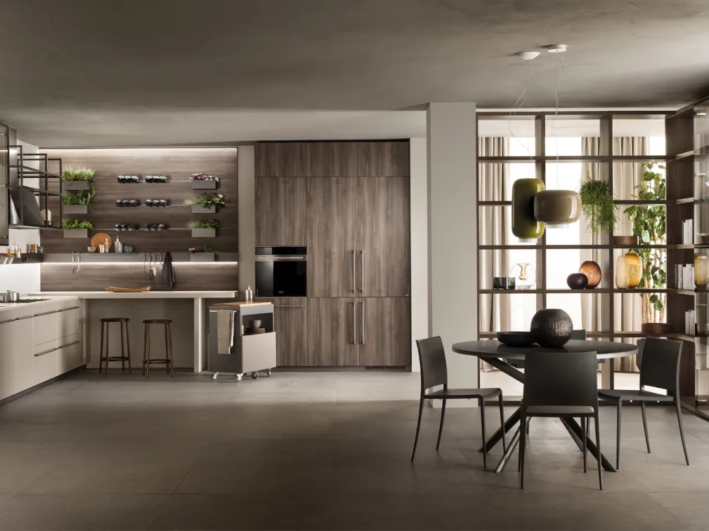 Ottieni informazioni sulla cucina Mia Grigio Selce e Noce Garden di Scavolini: questa soluzione in melaminico sarà l'acquisto ideale per te!