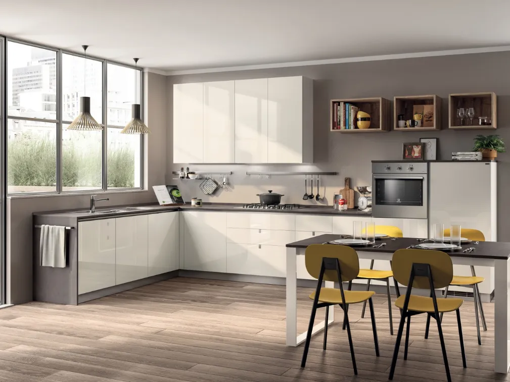 Le Cucine Moderne della firma Scavolini hanno una generale armonia tra mood moderno, ricerca tecnologica, praticità e originalità. Tra i molteplici modelli presenti nel catalogo Scavolini, la cucina nella fotografia rende lo spazio altamente fruibile e danno la possibilità di vivere gli ambienti domestici appieno. Se vuoi acquistare una soluzione in laccato lucido tra le diverse proposte ad angolo, l'alta componibilità della Cucina Moderna Urban & Urban in laccato Bianco lucido di Scavolini ti darà modo di esprimere le tue necessità d’arredo. Realizza con noi un progetto su misura: per vivere in pieno agio la tua casa, i nostri arredatori sono pronti a guidarti con professionalità nella scelta.