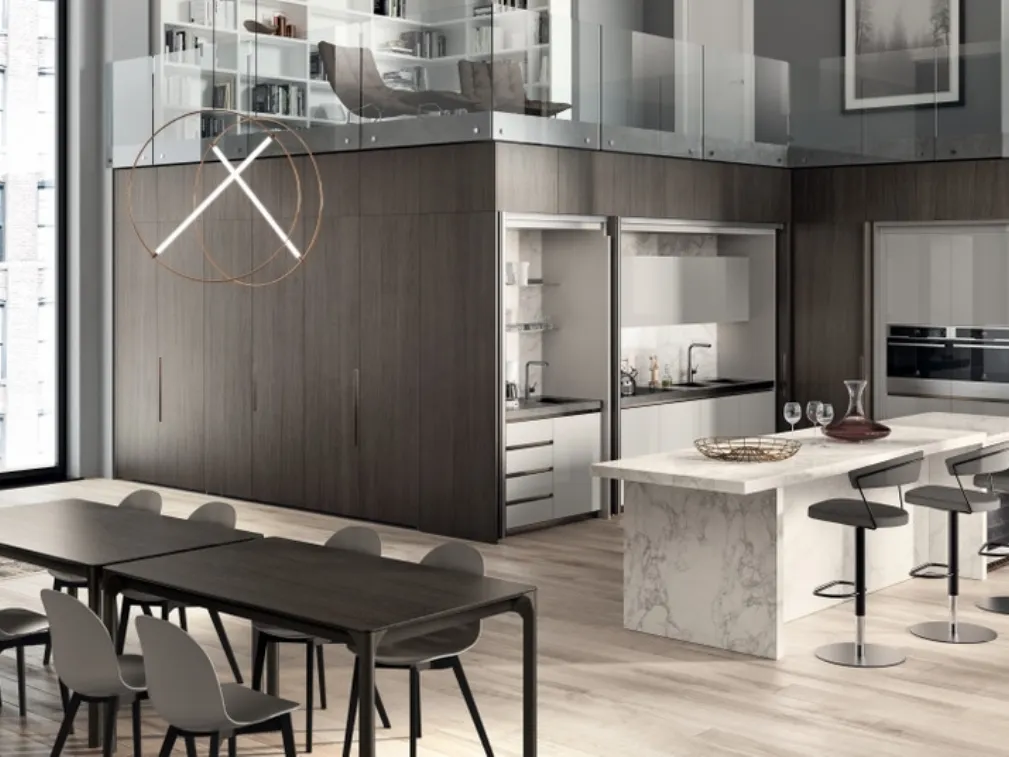 Scopri componibilità su misura delle Cucine monoblocco salvaspazio Scavolini: la cucina Boxi 04 in laccato lucido ti attende!