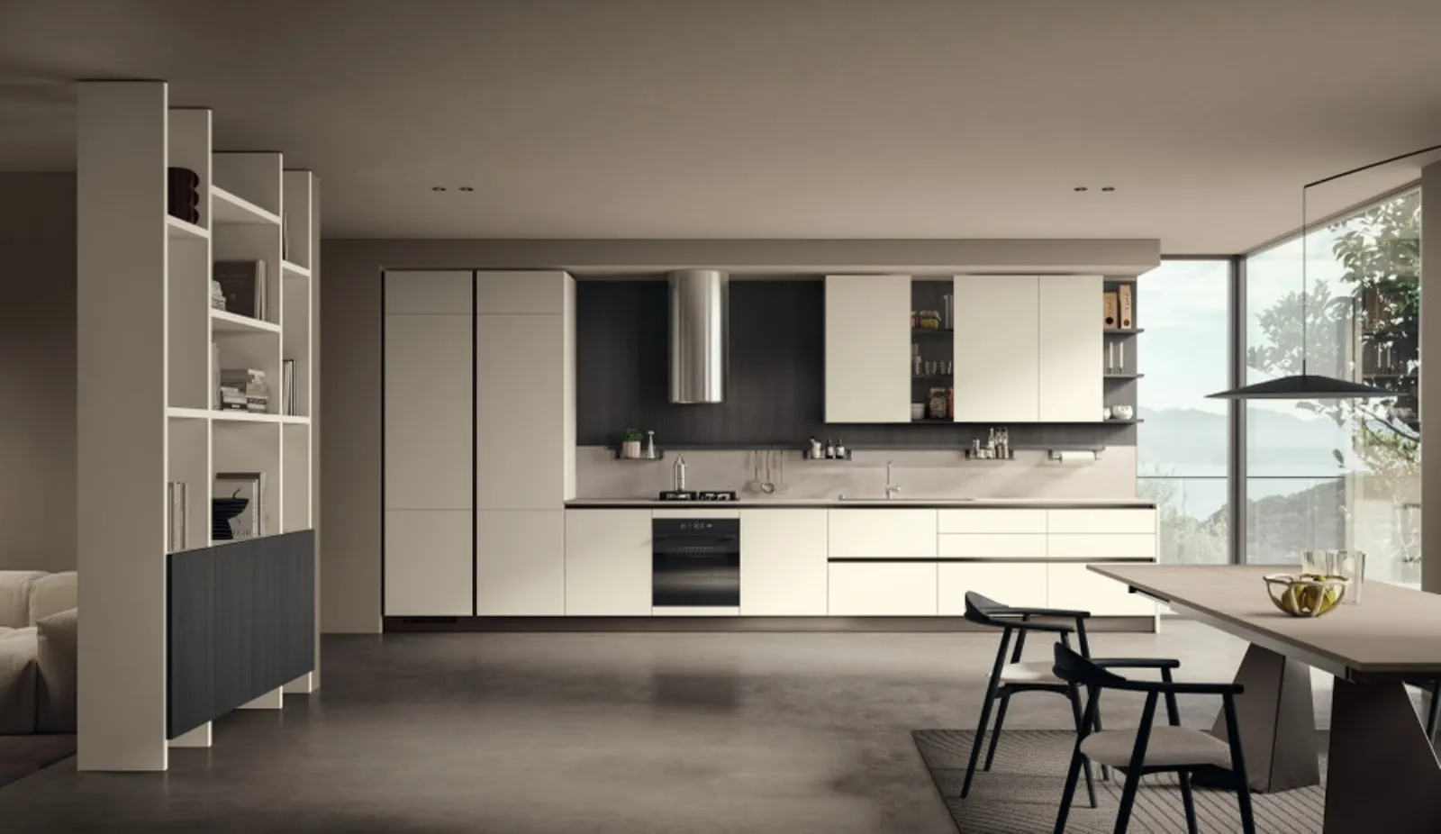 Scopri l'alta componibilità delle Cucine in linea Scavolini: la cucina Essenza 04 in melaminico ti aspetta!