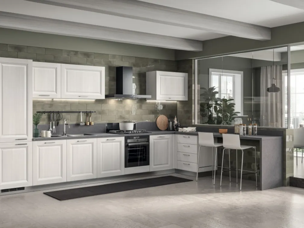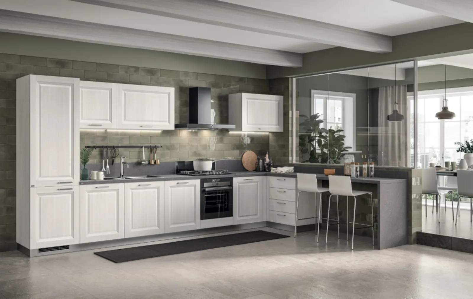 Cerchi cucine realizzabili su misura? Ottieni informazioni sul modello Family decorativo Larice Neve in melaminico del brand Scavolini!