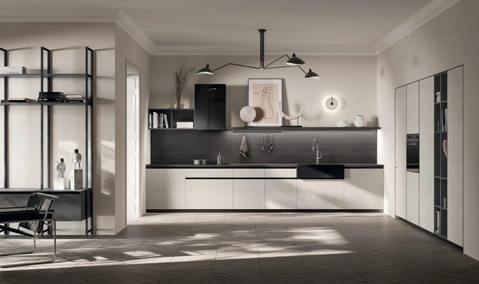 Scopri componibilità personalizzabile delle Cucine ad angolo Scavolini: la cucina Mira Home Matter e Gate Matter in melaminico ti sta aspettando!