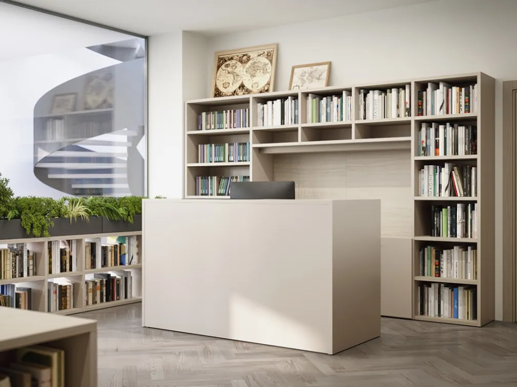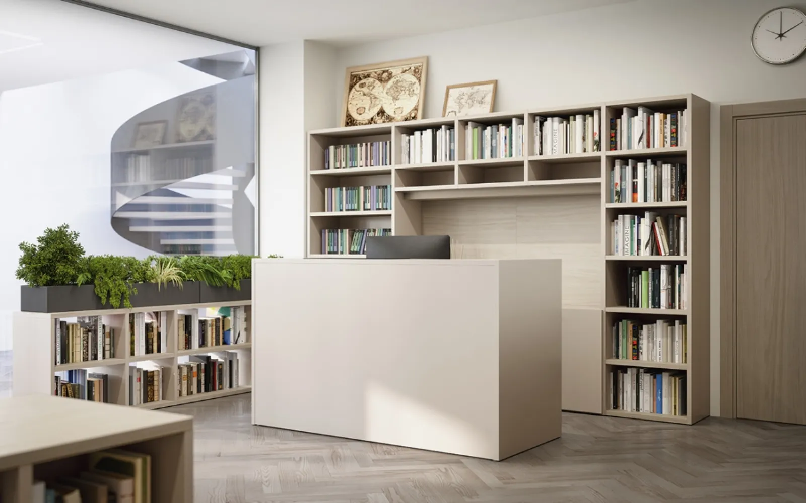 Vuoi ammobiliare l'ambiente lavorativo? Eccoti varie proposte di banconi reception in melaminico, come il modello Bancone Reception 16A di Cinquanta3.