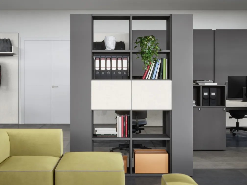 Mobile Ufficio Libreria 05B di Cinquanta3: su misura per risolvere diverse problematiche, di fatto ottimizza tutti gli spazi disponibili valorizzandoli appieno. Questa soluzione, tra molteplici librerie per ufficio in melaminico di Cinquanta3, è su misura per completare l'arredamento degli ambienti lavorativi con funzionalità. Le soluzioni arredative che presentiamo nel nostro showroom sono il frutto della pluriennale competenza e dedizione delle aziende leader nel campo, come Cinquanta3. Da noi scoprirai le composizioni di Arredo Ufficio con librerie per ufficio in melaminico dei migliori brand per completare lo spazio con logica e razionalità. L'acquisto dell'Arredo Ufficio più adatto per le proprie esigenze è imprescindibile se si desidera creare uno spazio versatile e pratico.