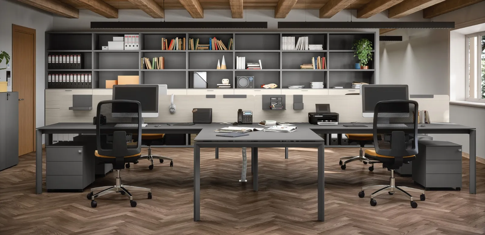 Se desideri ultimare uffici operativi e direzionali, ecco qui il modello Libreria 04C di Cinquanta3 tra diverse proposte di librerie per ufficio.