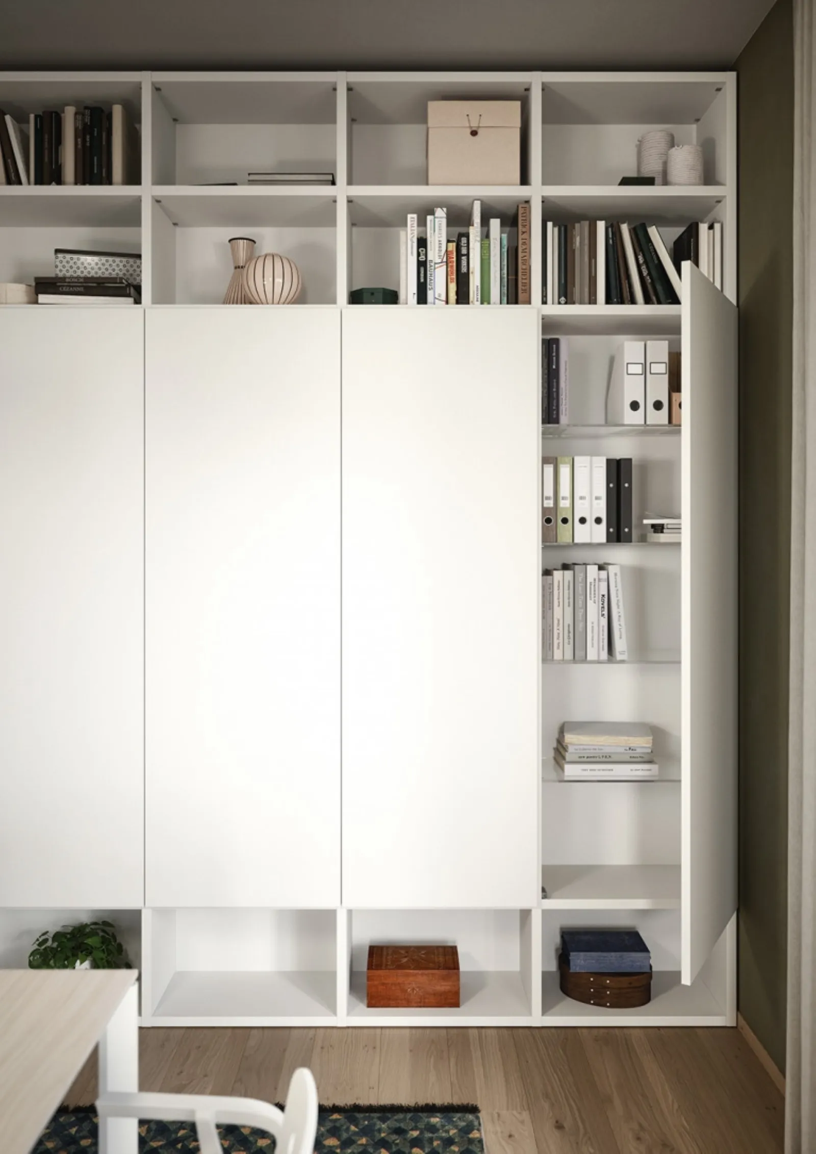 Vuoi allestire l'ambiente lavorativo? Ti presentiamo varie proposte di librerie per ufficio in melaminico, come il modello Libreria 05A di Cinquanta3.