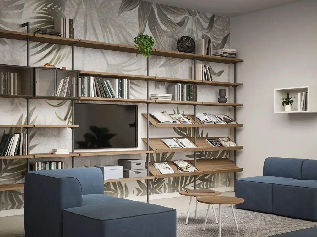 Ammobiliare attentamente il tuo ufficio è di rilievo per garantire la comodità per i lavoratori e l’accoglienza per i clienti: il nostro showroom ti aspetta. Per il tuo Arredo Ufficio prendono un ruolo di centrale importanza le composizioni con librerie per ufficio in melaminico, studiate per attrezzare lo spazio. In negozio puoi vedere dal vivo le più esclusive proposte d'arredo di Arredo Ufficio in melaminico, sempre belle e resistenti e ideali per ambienti di ogni genere. Guarda nel nostro negozio molteplici modelli di librerie per ufficio di grande qualità, sempre fatti in materiali durevoli e resistenti nel tempo. Mobile Ufficio Libreria componibile Uniko di Cinquanta3: è uno dei migliori esempi di arredi per gli ambienti lavorativi funzionali e belli da vedere del rinomato brand.