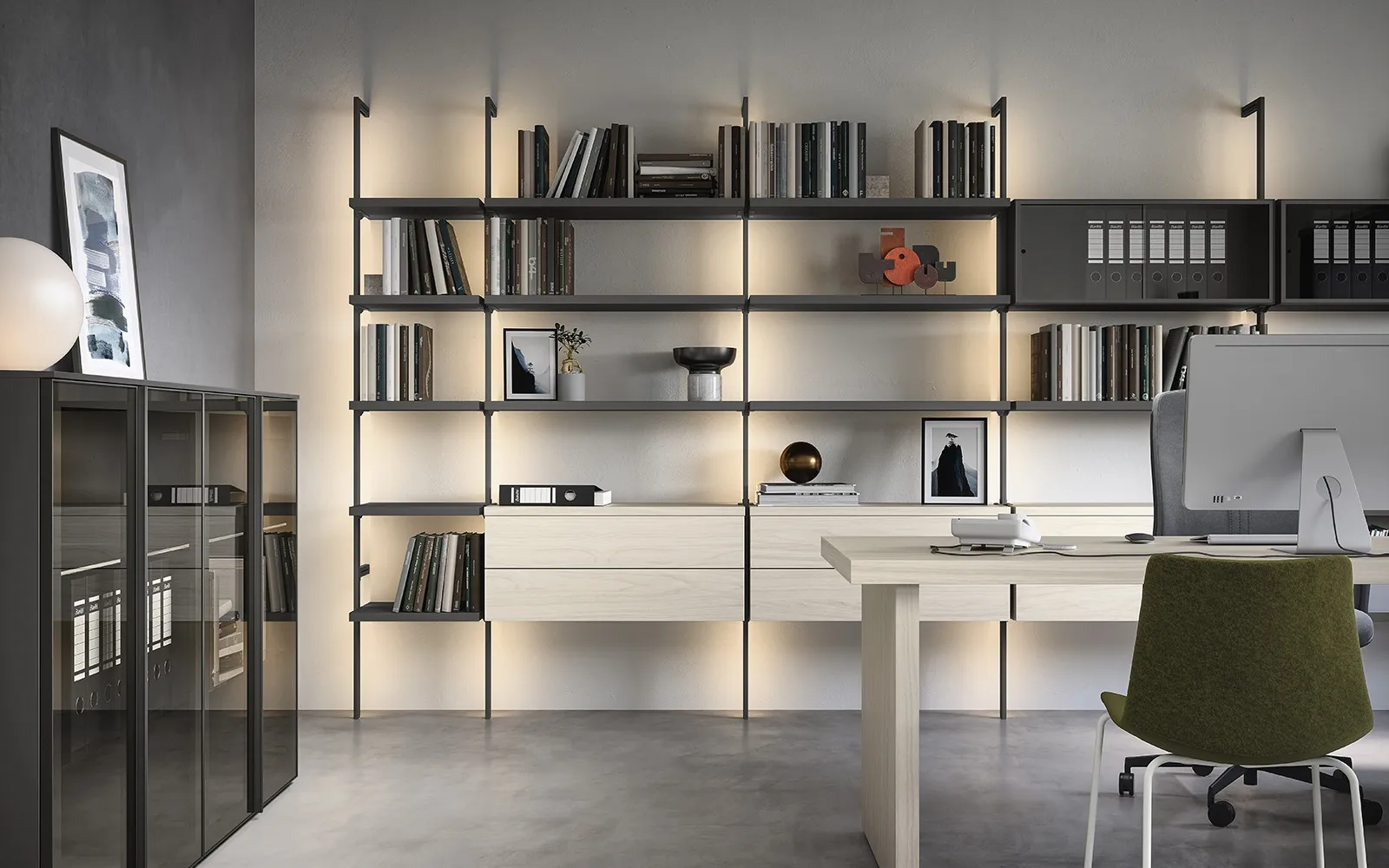 Cerchi Arredo Ufficio dei migliori brand? Scopri le differenti soluzioni di librerie per ufficio in melaminico, come il modello Libreria Uniko di Cinquanta3.