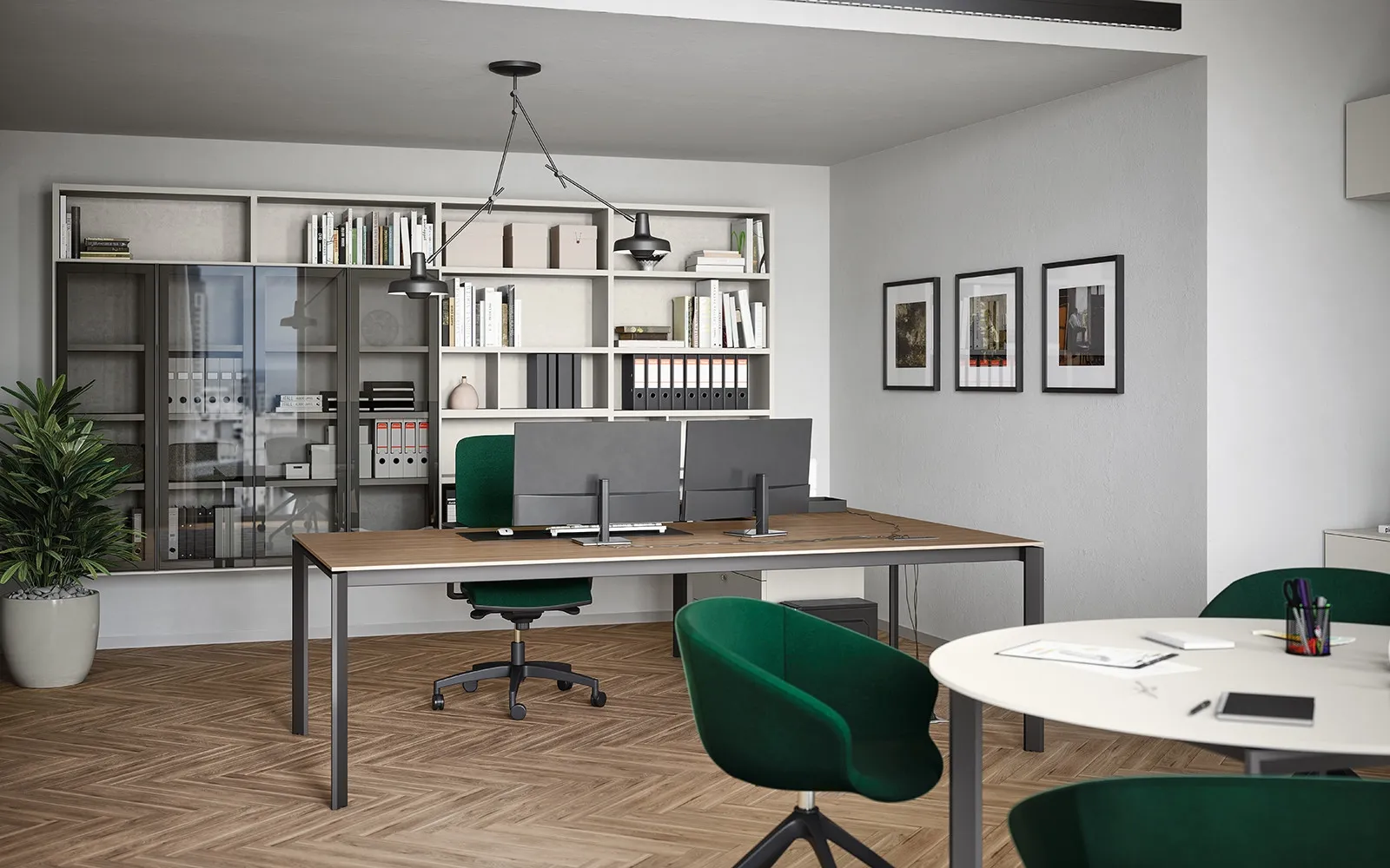 Vuoi progettare l'ambiente lavorativo? Ecco qui diverse proposte di scrivanie direzionali in melaminico, come il modello Scrivania Direzionale 02B di Cinquanta3.