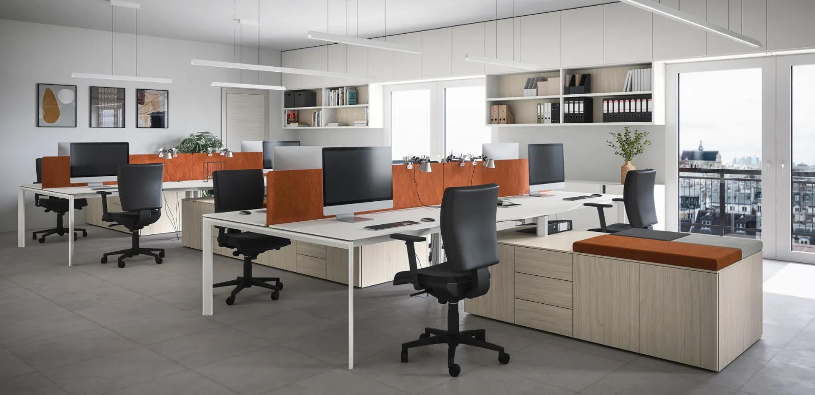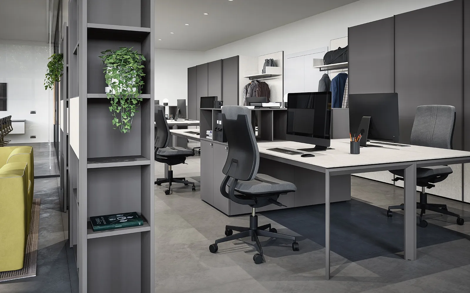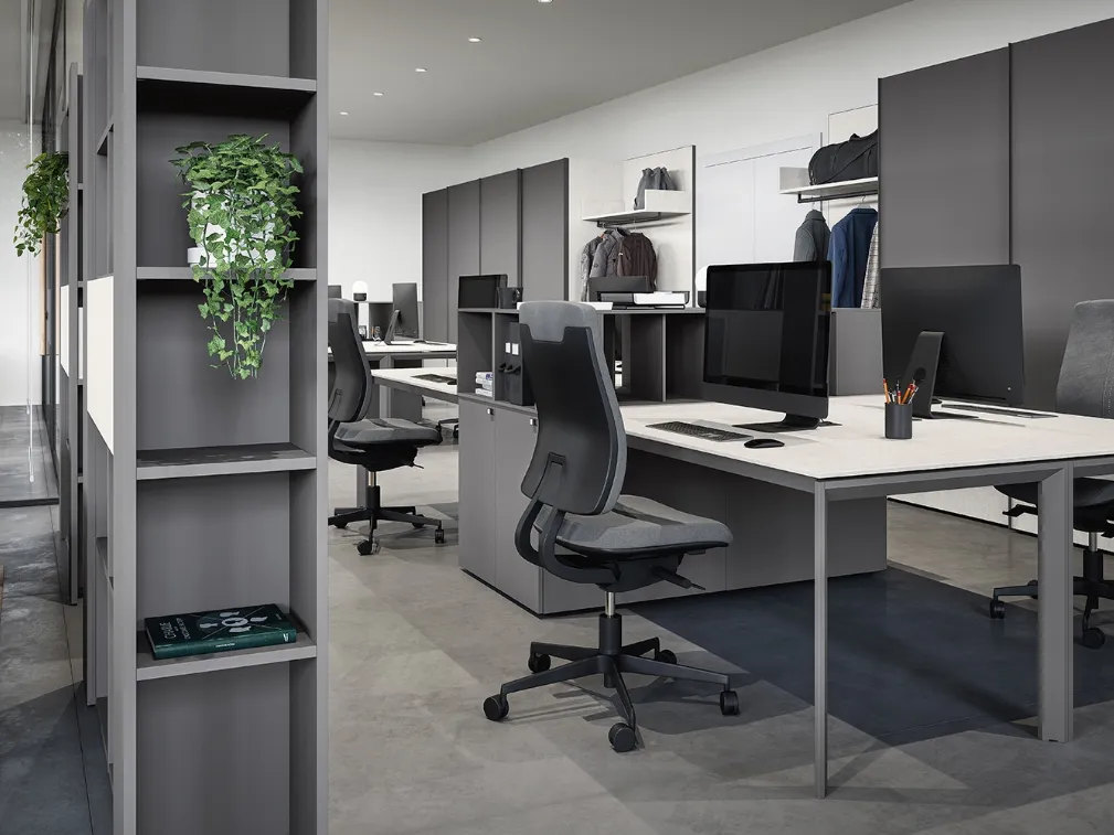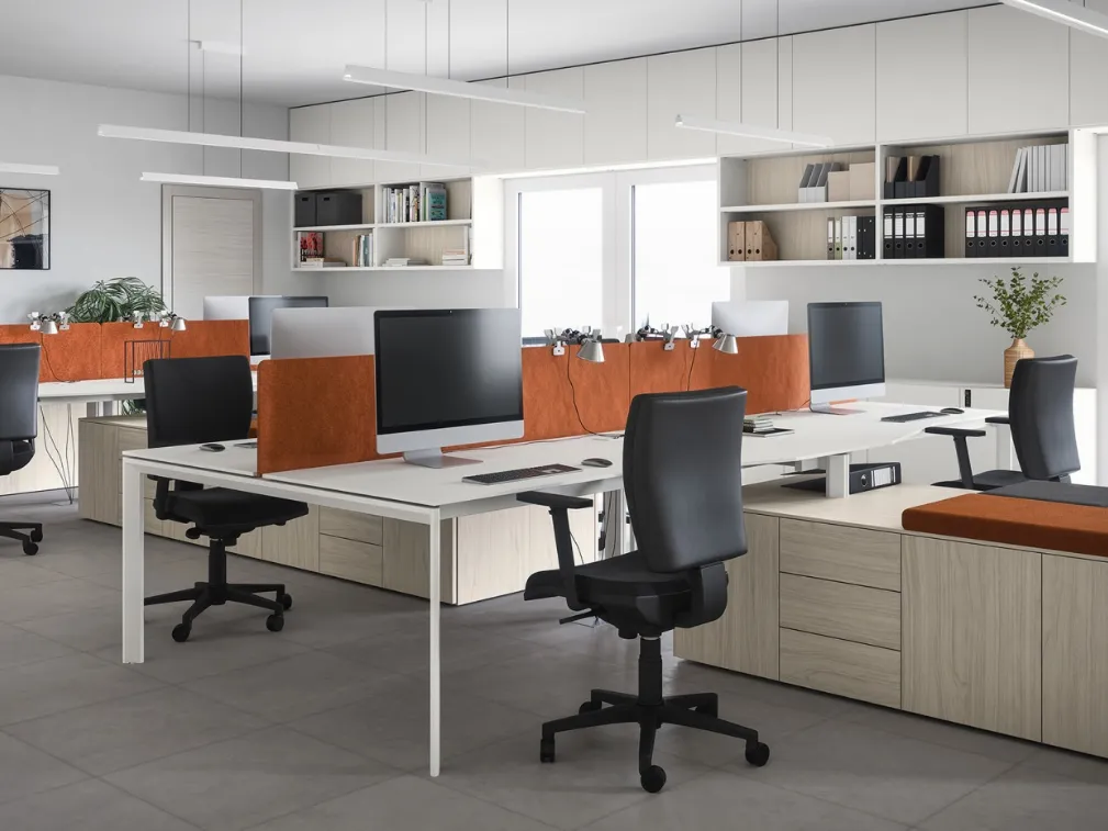 Vuoi ammobiliare gli spazi di lavoro? Eccoti varie proposte di scrivanie operative in melaminico, come il modello Scrivania Operativa 06B di Cinquanta3.